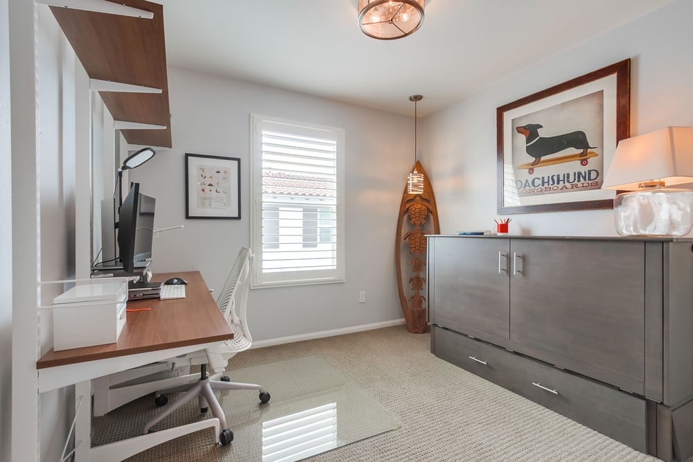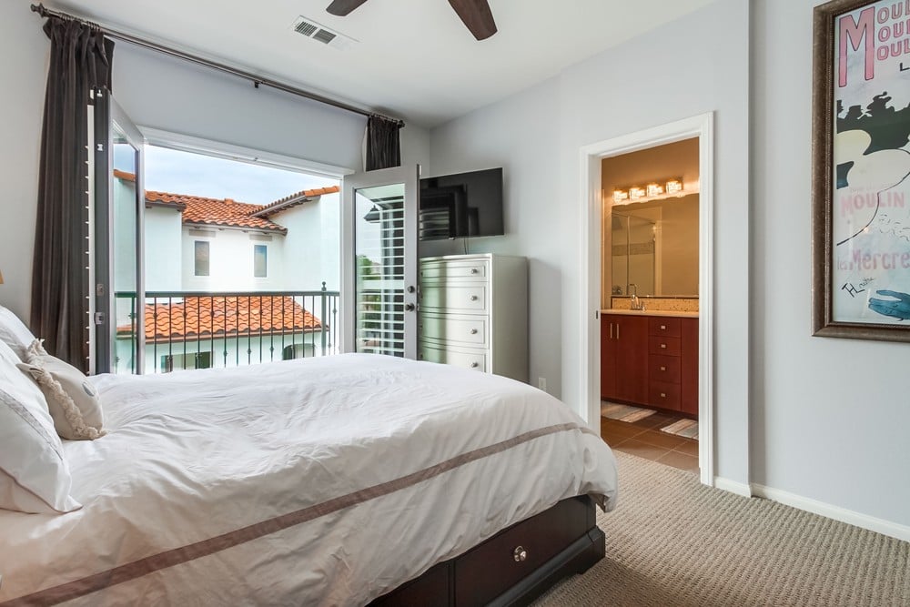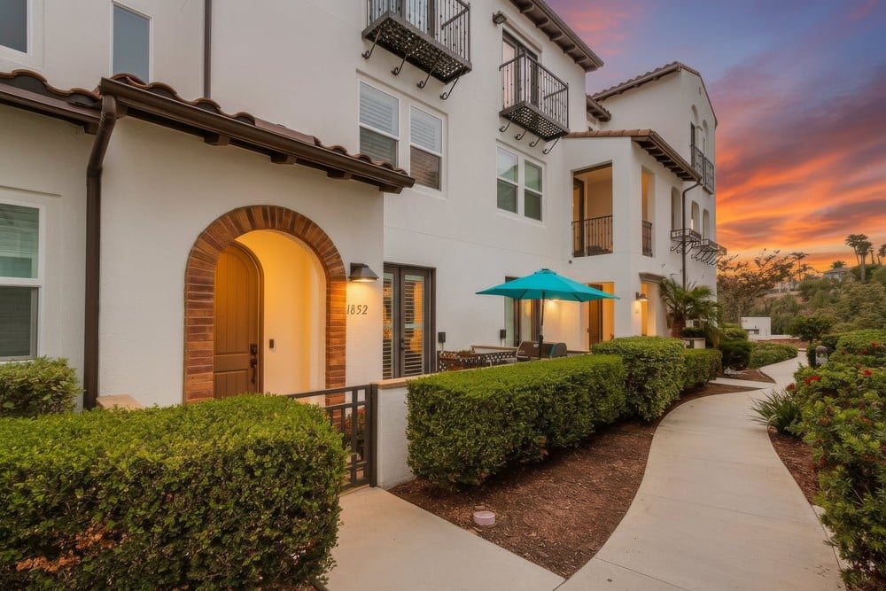 Welcome to your dream home in the exclusive La Costa Collection of South Carlsbad! This stunning townhome offers the perfect blend of modern luxury & practical living. Step inside to discover the versatility of the first floor, featuring an optional bedroom, ideal for a home office or personal gym space. On the second floor, embrace the open floor plan designed for modern living. The spacious chef’s kitchen is a culinary delight, showcasing a large island with quartz countertops, ample cabinet space with convenient pull-out shelving, & state-of-the-art stainless steel appliances. The adjacent dining area & living room, complemented by a half bath, create an inviting atmosphere for entertaining guests. Ascend to the third floor, where all three bedrooms are thoughtfully positioned, including the luxurious primary suite. Enjoy the privacy of your en-suite bathroom, the convenience of a walk-in closet, & the serenity of a private balcony. The home also features PAID SOLAR, designer lighting, shutters, custom closet organizers in all bedrooms, central heating & A/C, in-unit laundry, & paid-off solar. The attached 2-car garage offers custom SafeRack overhead storage. Outside, the front porch patio offers a perfect setting for relaxing or enjoying BBQs with family & friends. The resort-style community features a pool, BBQ area, & lush green spaces. Located within walking distance to Plaza Paseo Real’s dining & entertainment, Carlsbad library, shopping, & top-rated schools. Additionally, you’ll be just minutes from beautiful beaches, golf courses, parks, & hiking. Welcome to your dream home in the exclusive La Costa Collection of South Carlsbad! This stunning three-story, solar powered townhome offers the perfect blend of modern luxury & practical living. Step inside to discover the versatility of the first floor, featuring an optional bedroom, ideal for a home office or personal gym space. On the second floor, embrace the open floor plan designed for modern living. The spacious chef’s kitchen is a culinary delight, showcasing a large island with quartz countertops, ample cabinet space with convenient pull-out shelving, & state-of-the-art stainless steel appliances. The adjacent dining area & living room, complemented by a half bath, create an inviting atmosphere for entertaining guests. Ascend to the third floor, where all three bedrooms are thoughtfully positioned, including the luxurious primary suite. Enjoy the privacy of your en-suite bathroom, the convenience of a walk-in closet, & the serenity of a private balcony. The home also features designer lighting, shutters, custom closet organizers in all bedrooms, central heating & A/C, in-unit laundry, & paid-off solar. The attached 2-car garage offers custom SafeRack overhead storage. Outside, the front porch patio offers a perfect setting for relaxing or enjoying BBQs with family & friends. The resort-style community features a pool, BBQ area, & lush green spaces. Located within walking distance to Plaza Paseo Real’s dining & entertainment, Carlsbad library, shopping, & top-rated schools. Additionally, you’ll be just minutes from beautiful beaches, golf courses, parks, & hiking.